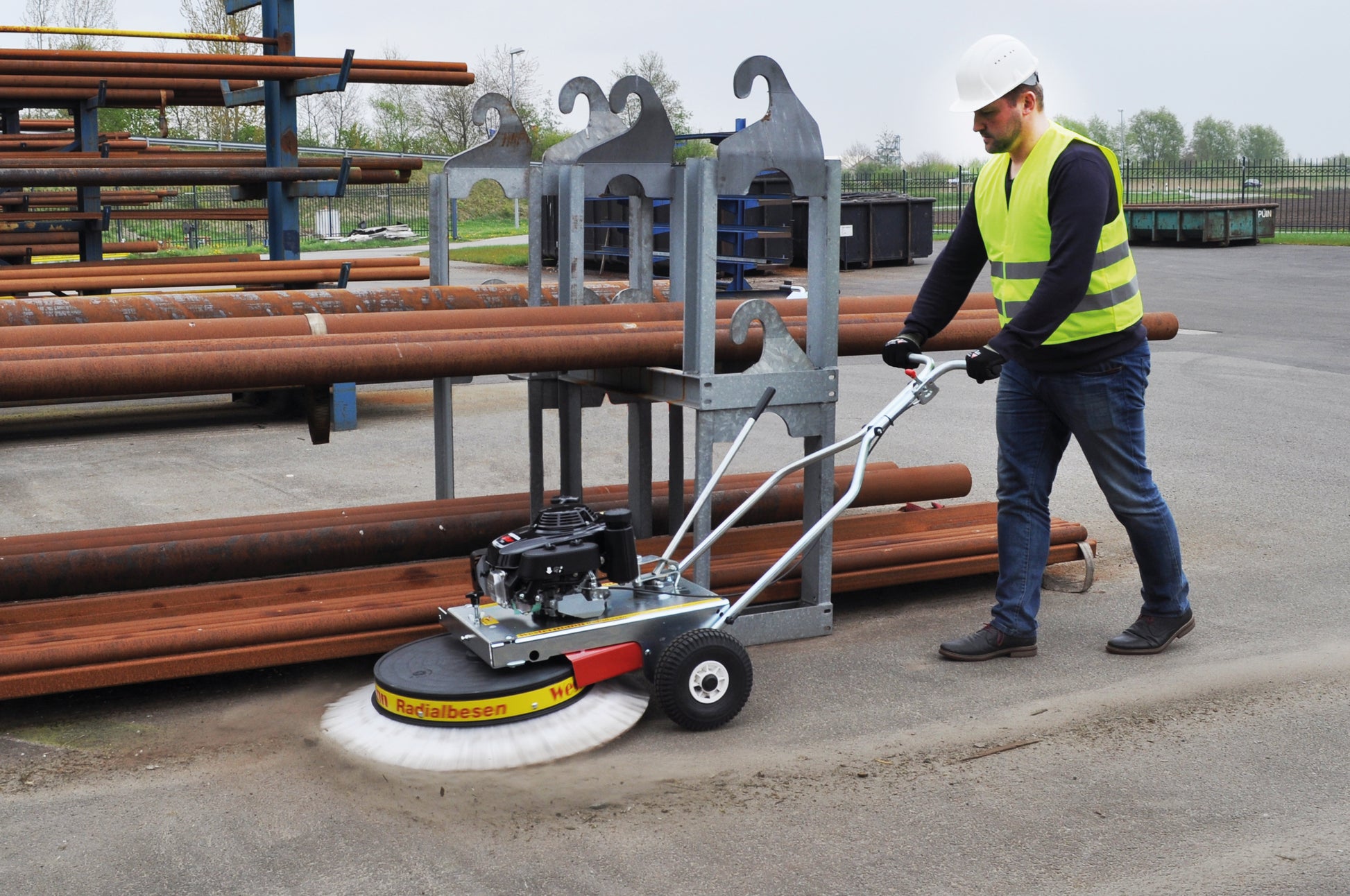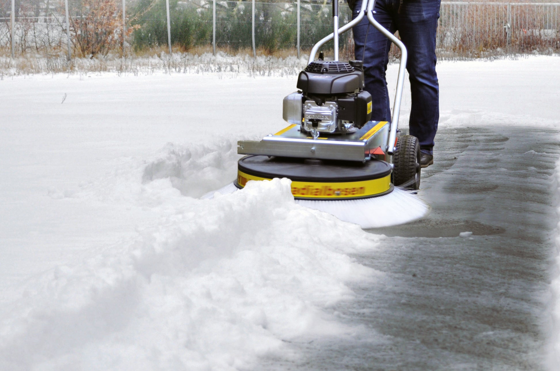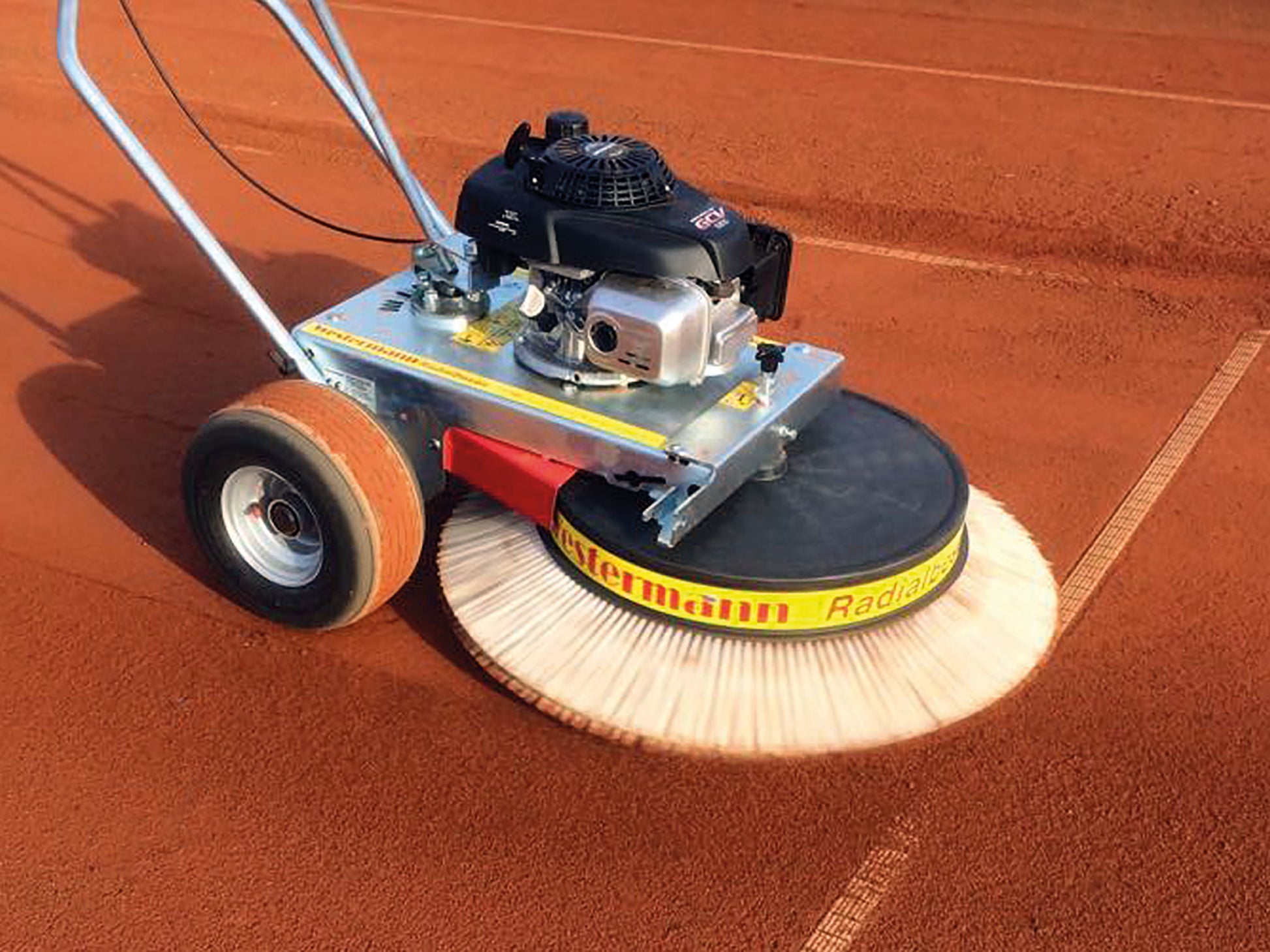 Meet the WR 870 Honda Special Radial Sweeper—a professional-grade machine designed to clean sensitive surfaces with care. Perfect for sports facilities, tennis courts, and planting film, it combines a wide 870 mm working width with adjustable brush rotation in both directions for precise control, even in narrow or winding passages. Its wide balloon tires ensure even weight distribution, protecting delicate surfaces while delivering excellent cleaning results—from fine dust to heavy debris. Built with a reliable Honda engine and an easy brush-change system, the WR 870 Honda Special offers powerful, versatile sweeping without compromise.